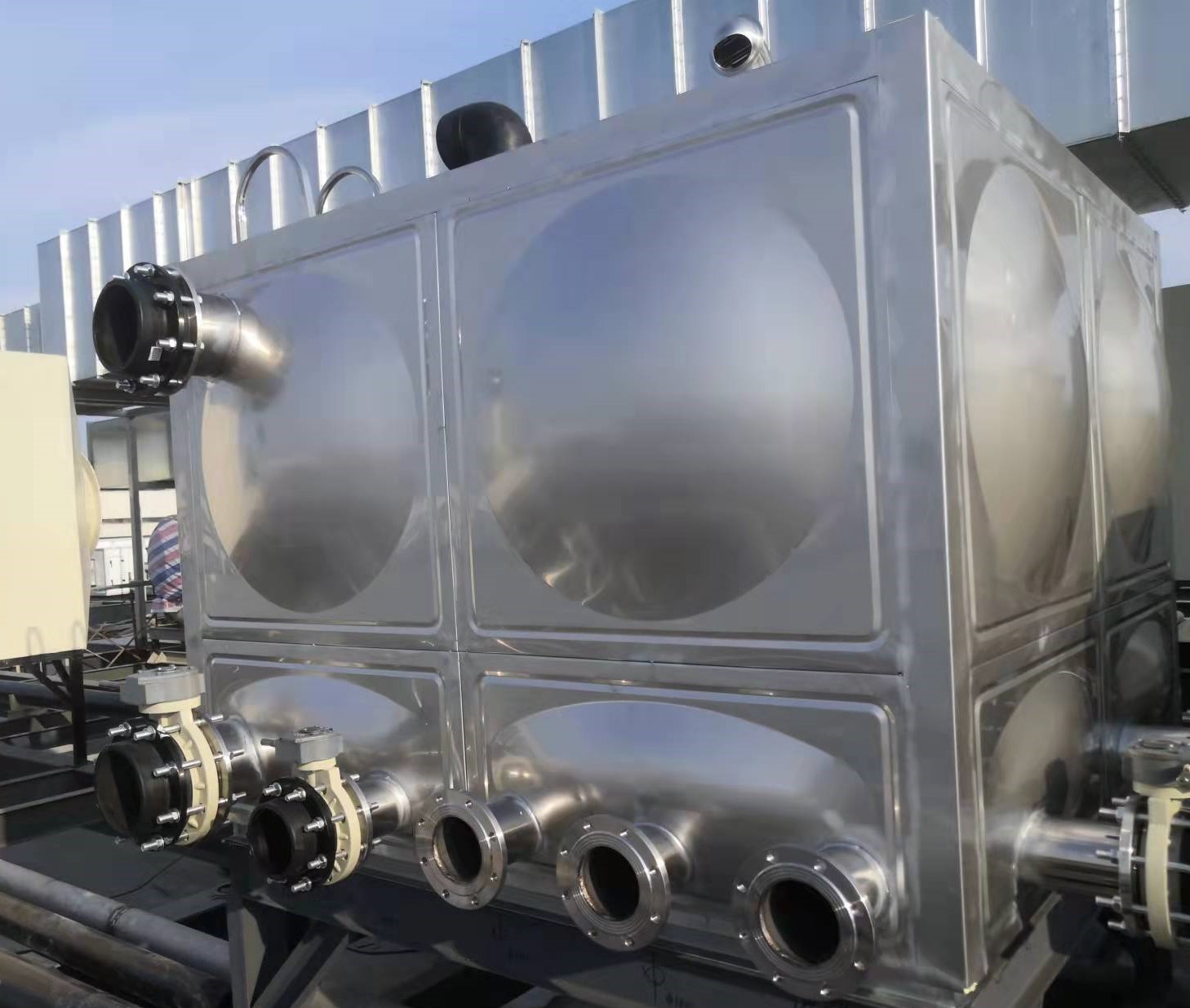 不銹鋼保溫水箱與箱體符合的保溫板塊,可全體扣合,完美覆蓋在箱體外表,使其外形與不銹鋼水箱毫無分別。不銹鋼保溫水箱還能保持常溫下24小時內降溫在10度以內,可根據生活和生產的需求定制水箱大小,完全滿足人民的需求。
